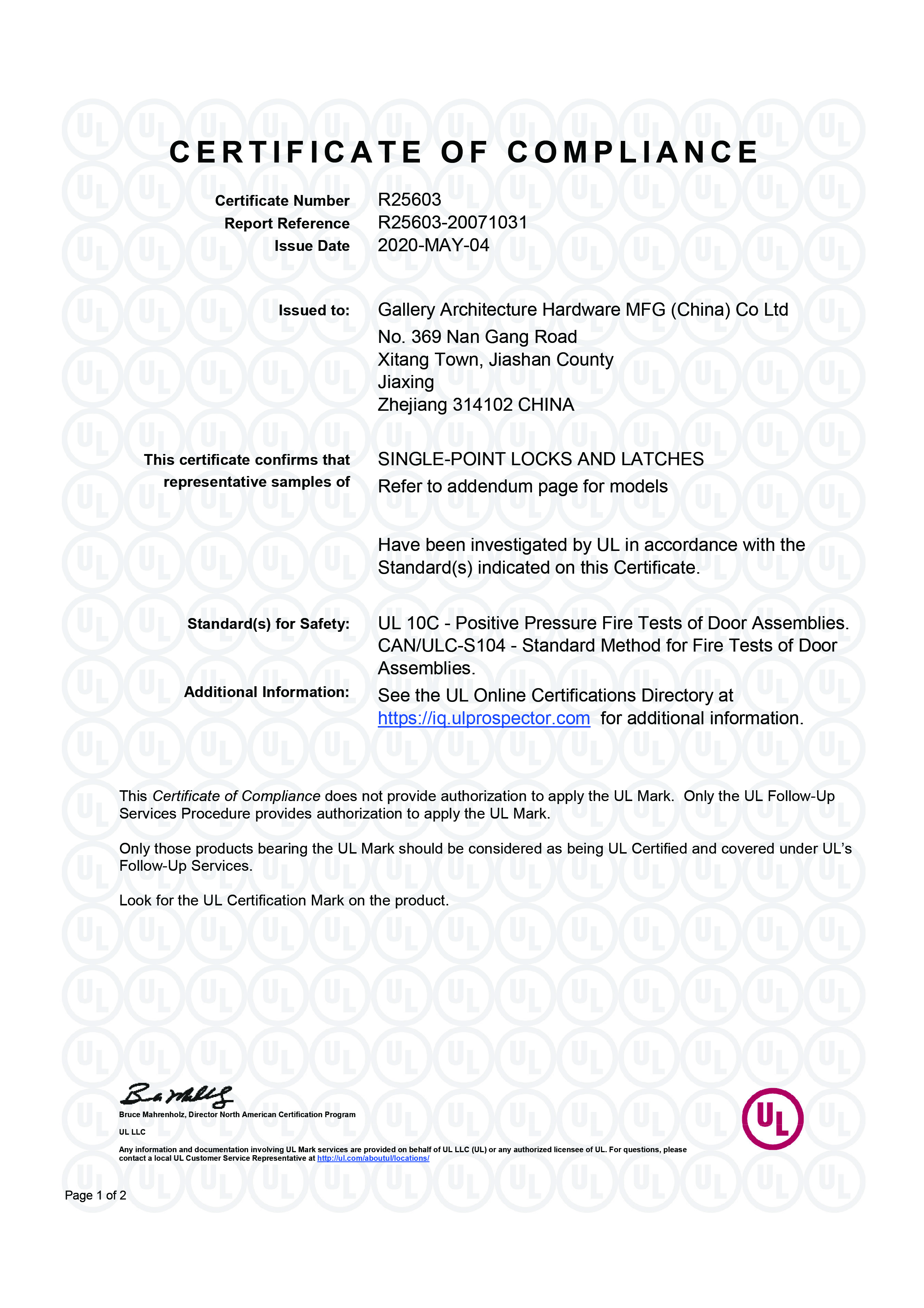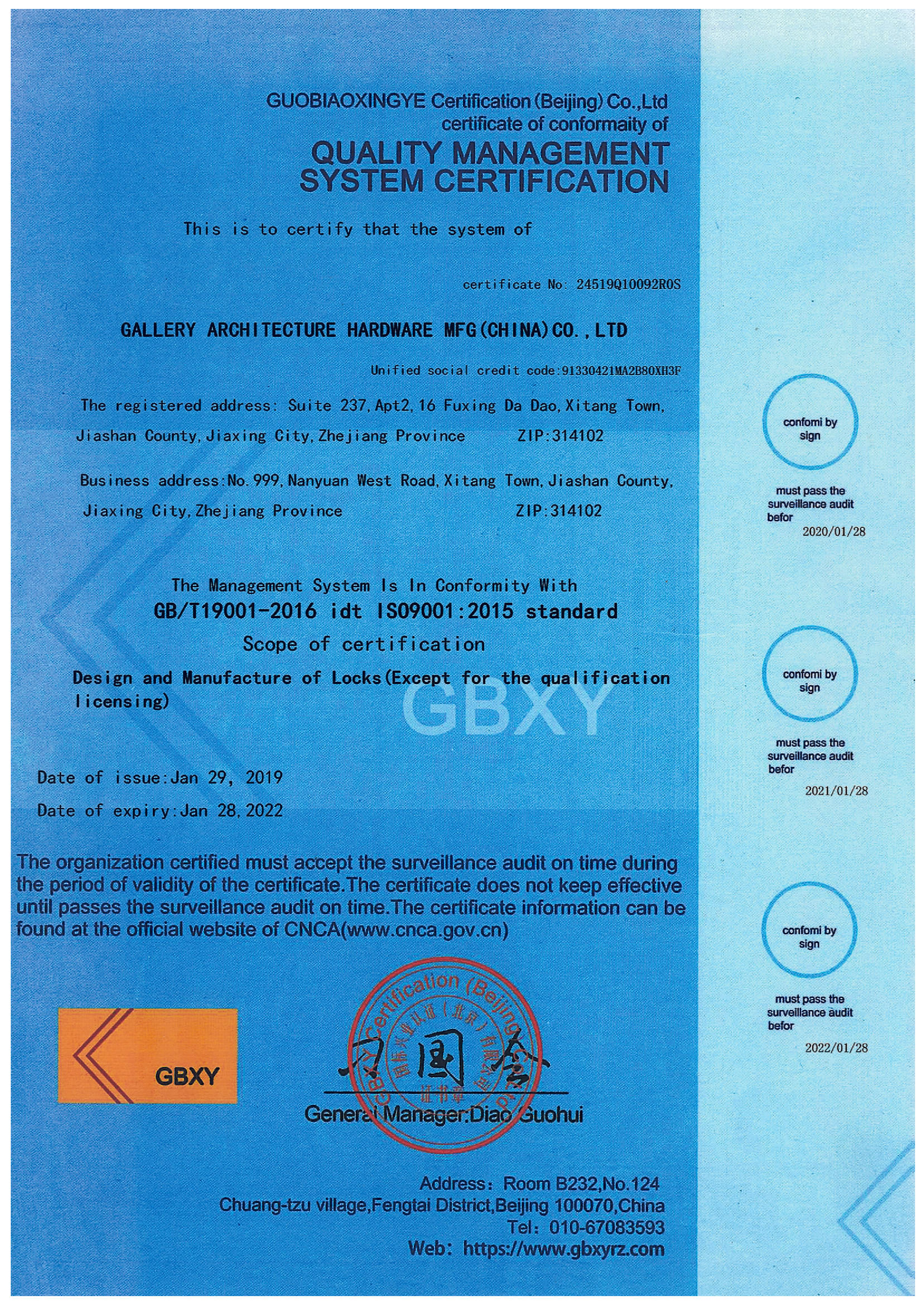 浙江堅迪五金制造有限公司始建于 1995 年。自 2003 開始,公司致力于高標準商業(yè)鎖的研發(fā)工作,并于 2006 及 2007 年,8700 插芯鎖系列獲得美國國家標準 ANSI A 156.13-2005 一級、ANSI A 156.2-2003 二級和美國 UL 10C3 小時防火測試認證。自 1998 年以來,公司不斷提升產品和客戶服務品質,并獲得了 ISO 9001 的認證。